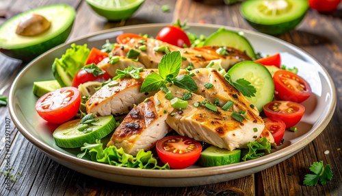 chicken, avocado, tomatoes, cucumber, salad, summer, fresh, colourful, slight, healthy, fowl, homemade, food, fitness, main course, side dish, crisp, epicure, culinary, low carb, health food, fruity, snack, enjoyment