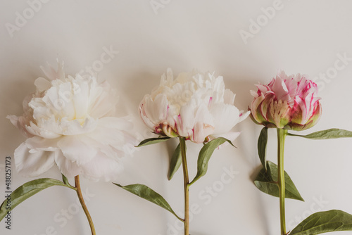 peony, up high, nature, white, background, flower, three, vintage, filter, effect, natural, fresh, group, pink, closeup, beauty, floral, decoration, spring, flower petals, delicate, green, stem, concept