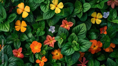 High Angle Shot of Blooming Tigirdia, Tropaeolum Majus, Viola Tricolor, and Vinca Difformis
