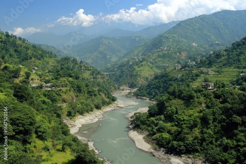 mountain, vale, river, green, tree, forest, nature, landscape, hill, vegetation, stream, water, scenic, beauty, view, mountain, cloud, sky, aerial, viewpoint, panorama, rural, asia, himalaya, travel, tour tourism, outdoors, scenery, natural, environment