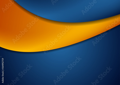 High contrast blue and orange glossy waves. Abstract modern graphic vector corporate background