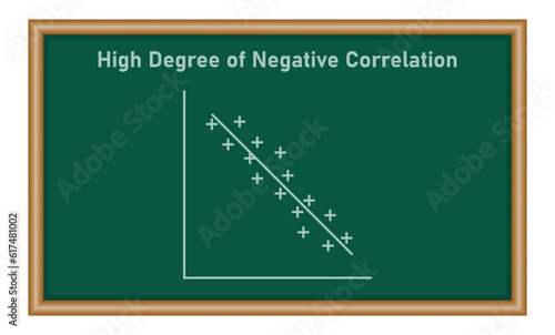 High degree of negative correlation graph. Scatter plot diagram. Resources for teachers and students.