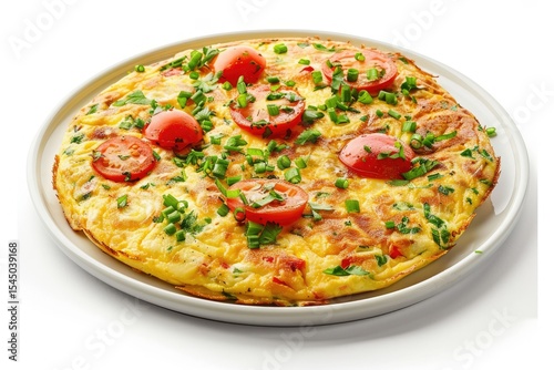 high resolution image of Omelette espagnole dans une pole en gros plan sur fond blanc