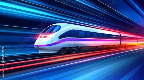 train, high speed, transportation, railway, commute, motion, speed, futuristic, urban, city landscape, architecture, technology, infrastructure, colours, design, abstract, dynamic, smooth, movement, energy, blur, aglow, vibrant, electrifying, modern, sleek, streamlined, efficient, progress, advancement, innovation, future, commuter, passenger, ride, journey, transit, route, destination, travel, velocity, momentum, engine, power, rush, metropolitan, skyscraper, skyline