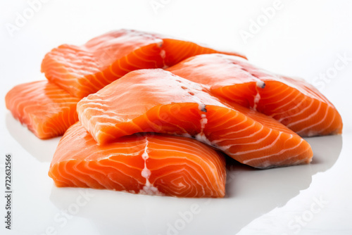 High stack of raw salmon fillets, healthy fat source, pescatarian diet