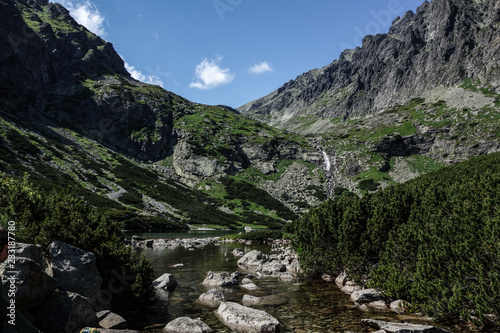 mountain, landscape, nature, mountain, river, sky, rock, water, vale, green, summer, travel, stream, view, panorama, forest, lake, waterfall, park, peak, stone, canyon, blue, hill, rock