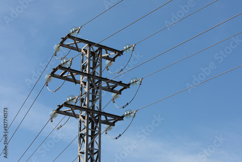 High Voltage Electricity Pole in Urban Setting - Power Distribution Infrastructure Concept