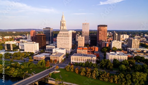 city landscape, downtown, city, sunrise, sunset, building, skyline, urban, aerial, view, panorama, modern, historic, autumn, foliage, tree, park, river, bridge, grass, gold, light, architecture, landscape, morning, evening, horizon, tranquil, vibrant