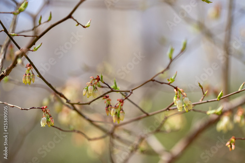 Highland wild blueberry blossoms in spring southern Maryland woodlands vaccinium corymbosum closeup