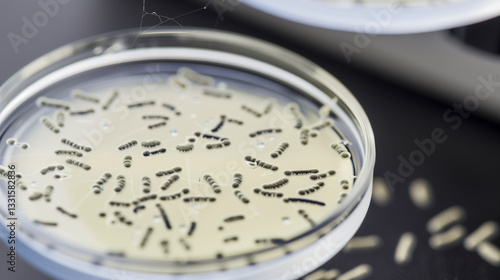 High-Magnification Microscopic Examination of Parasitic Organisms on a Laboratory Slide with Blurred Background Featuring Scientific Equipment