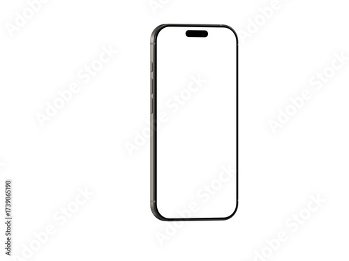 High-quality image of a modern smartphone with a blank screen, perfect for app presentations or website mockups. Isolated on white background.