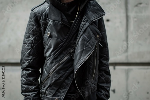 leather, jacket, black, fashion, style, texture, clothing, trendy, outerwear, zip, cool, casual attire, garment, item, design, modern, biker, urban, stylish, accessory, outfit, chest, anonymous, front, view, material, detailed, fashionable, chic, youth, culture, contemporary, close, up, craftsmanship, wear, hard-wearing, city, life, elegance, hip, detail, no, face, personal, thread, metal, detail