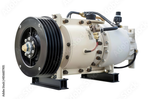 High-quality industrial air compressor isolated on white background. Perfect for engineering and mechanical applications.