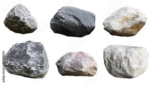 High-quality natural stone texture featuring different shapes and earthy tones on a transparent background for design purposes