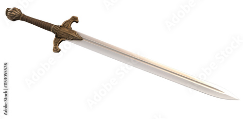 High-Quality PNG Old sword medieval weapon blade knight equipment with ornate handle isolated on white background – High Resolution