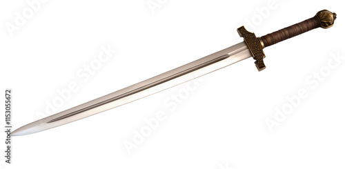 High-Quality PNG Old sword medieval weapon blade knight equipment with ornate handle isolated on white background – High Resolution