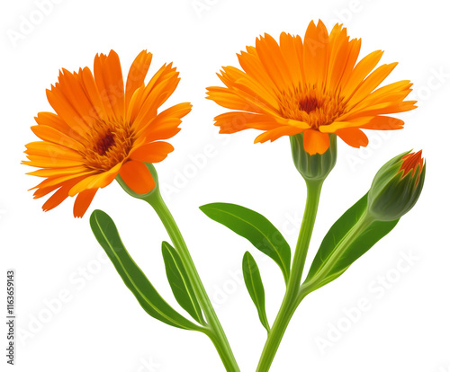 calendula, flower, orange flower, herbal, plant, flora, botanical, bud, bloom, blossom, floral, nature, spring, summer, garden, floral arrangement, isolated, black background, vibrant, bright, colourful, beautiful, detailed, photo, image, photo, cut flowers, medicinal plant, natural, wellness, health, decoration, design element, high-coloured, closeup, macro, hi-res, studio shot, green leaf, stem