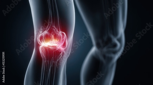 High-Quality Stock image of knee pain, focusing on joint inflammation with a highlighted area around the knee joint.