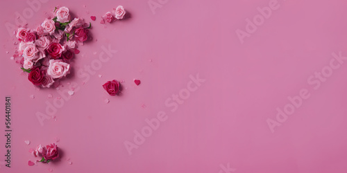 High-Resolution Image of Valentine's Day Hearts and Roses on a Pink Background with Copy Space, Showcasing the Love and Romance of the Holiday, Perfect for Adding a Touch of Love to any Design.