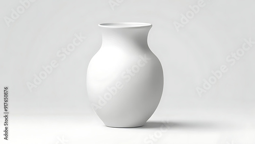 High-Resolution Mock-Up of a Simple White Ceramic Vase with a Smooth Finish and Elegant Shape on a Plain White Background, Featuring Generous Copy Space for Custom Designs or Branding