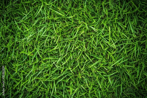 High-resolution top view of a lush green grass texture, ideal for a sports field or football playground, captured with sharp focus using a Sony Alpha A7 III.