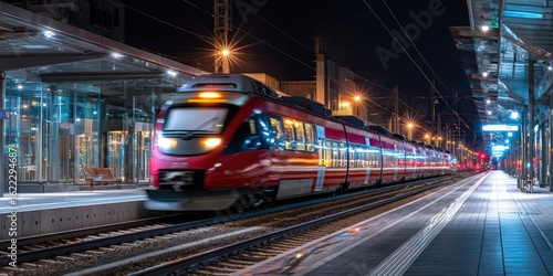 train, railway, station, night, motion, high speed, passenger, red, modern, architecture, platform, light, transportation, rail, traveling, travel, city, urban, city landscape, infrastructure, technology, commute, perspective, motion blur, mobility, metropolitan, urban scene, night scene, city life, public transport, scenic, travel destination, european city, austria, graz, transit