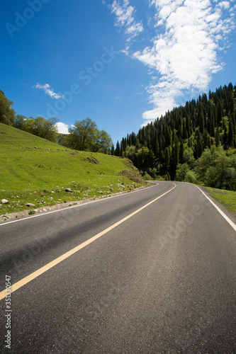 nature, road, sky, cloud, mountain, highway, road trip, tree, travel, scenic, no people, tour tourism, travel destination, clear sky, cloudscape, plant, green, forest, mountain chain, hill, winding road, driveway, dividing line, transportation, day, outdoors, summer, china, asia, nobody, landscape, tranquil scene, photo, color image, vertical