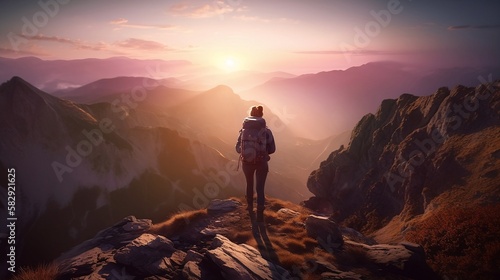 hiker, landscape, mountain, scenery, sunset, climber, camping, mount, sunrise, high altitude, mountaineering, view, beautiful, ai, artificial intelligence, adventure, camper, bravery, courage, hobby, nature, exploration, expedition, excavation, mapping, wilderness, sky, hiking, people, top, rock, travel, peak, silhouette, woman, hill, person, business, mountain, sport, climbing, freedom, success, trekking