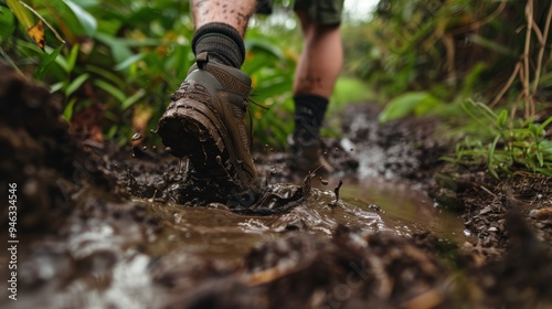 hiking, mud, boot, hiker, trail, forest, nature, adventure, waterproof, dirty, shoe, walking, trekking, travel, exploration, wilderness, rainforest, jungle, active, recreation, environment, path, freedom, step, journey, expedition, discovery, puddle, water