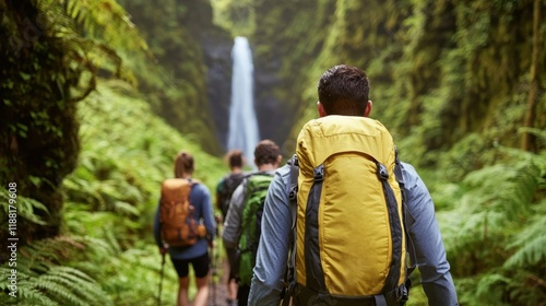 hiker, trail, forest, waterfall, nature, adventure, journey, exploring, backpack, scenic, greenery, tree, outdoors, summer, friends, landscape, travel, path, trekking, sunlight, serene, exploration, wild, calmness, water, group, environment, beauty, ecosystem, foliage, vacation, mountain, activity, healthy, fresh air, leisure, scenic view, natural beauty, organic, vibrant, flora, wilderness, companion