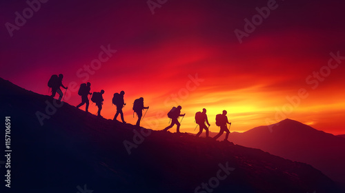 hiking, adventure, silhouette, climber, sunset, nature, outdoors, exploration, trail, mountain, trek, journey, backpack, cliff, sky, vibrant, orange, pink, purple, determination, rugged, terrain, scenic, wilderness, ascent, dawn, dusk, landscape, serene, effort, goal, climbing, action, peak, challenge, rocky, dramatic, beautiful, inspiring, freedom, horizon, sunlight, twilight, achievement, courage