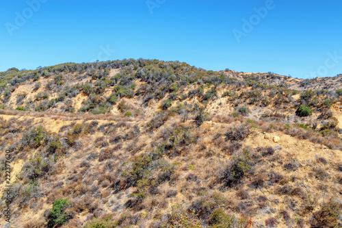 Hiking and biking trail in middle of dry California mountain hillsides