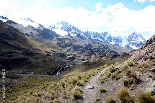 mountain, llama, andes, bolivia, south america, travel, hiking, mountain, landscape, sky, nature, vale, view, cloud, snow, rock, panorama, range, peak, hill, alpine, green, summer, river, cloud, blue, alps, park, road