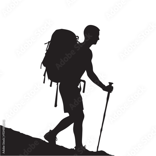 Hiking man Silhouettes. hiker with rucksacks and backpack silhouette.
