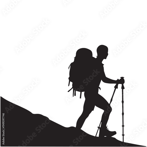 Hiking man Silhouettes. hiker with rucksacks and backpack silhouette.
