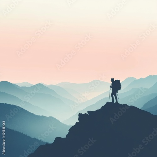 hiker, backpack, mountain, ridge, vale, sunrise, nature, silhouette, adventure, landscape, exploration, trekking, ascent, view, freedom, peak, scenery, horizon, pole, climber, fitness, travel, sky, elevation, journey, wilderness, calm, trail, beauty, sport, activity, health, serenity, exercise, scenic, challenge, peaceful, environment, sunlight, shape, generative, ai