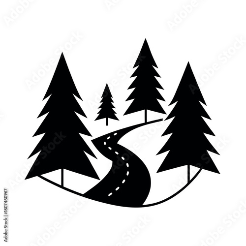 Hiking Trail with Pine Trees Icon Vector Illustration