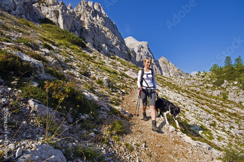 hiking, dog, hike, sport, backpack, adventure, trail, natural, activity, hiker, backpacker, autumn, travel, adult, holiday, trek, sunny, active, summer, outside, trekking, female, walk, holiday maker, smile, woman, lifestyle, healthy, young, girl, woman, fall, blue, person, mountain, sky, beautiful, background, collie, nature, border, pet, nordic, happy, landscape