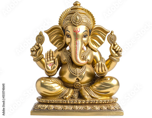hindu god ganesha statue, Miniature Ganesh idol in brass, front-facing, transparent PNG