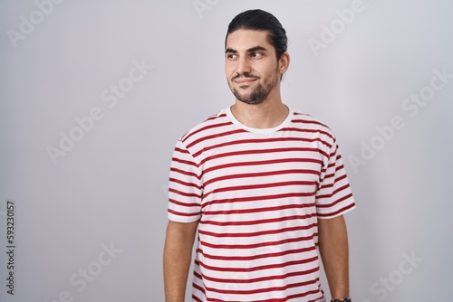 away, background, hispanic, isolated, looking, man, over, side, smiling, standing, staring, thinking, adult, beard, casual attire, cheerful, confident, expression, eye, face, fashion, photogenic, happy, idea, interest, interested, latin, long hair, look, male, styled, mouth, natural, person, portrait, positive, smart, smile, space, stare, strip, studio, trust, up, view, young