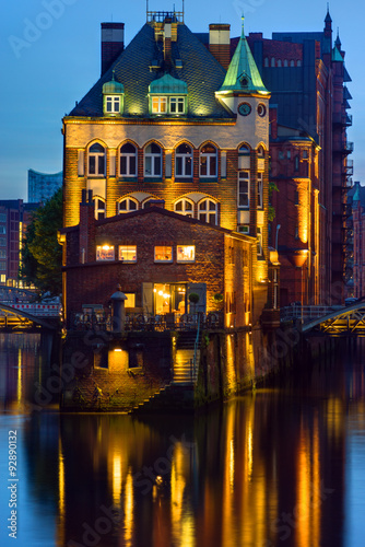 hamburg, port, night photography, architecture, building, warehouse, canal, lighting, heaven, seaport, water, german, tourist attraction, landmark, tour tourism, elba, flux, by night, light, europa, stock, warehouse, trade