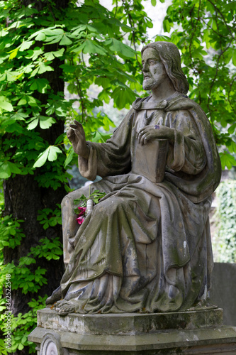 Historic Statue on the spring mystery old Prague Cemetery, Czech Republic