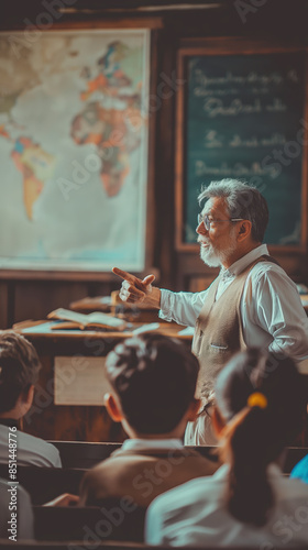 History teacher lecturing students history lessons (whimsical, blend mode) classroom