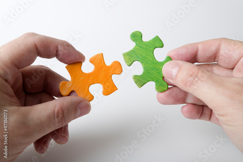 Hände mit Puzzleteilen, Teamarbeit, Partner