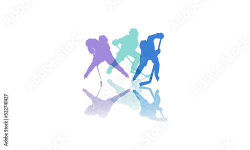 Hockey players on the ice in the attack throwing off the reflection. Silhouettes of players on a white background. Flat vector design with place for text