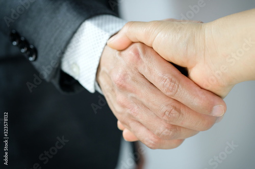 Holding hands with business partners to trust business partners, relationships to achieve future commercial and investment goals.