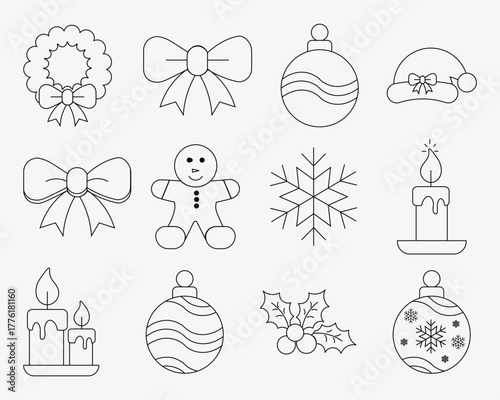 Holiday Christmas Icons Line Art and Flat Graphics Set Icons