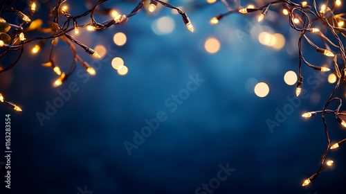 Holiday illumination with glowing christmas garland lights on dark blue background