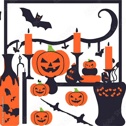 halloween, pumpkin, bat, vector, autumn, night, holiday, illustration, horror, skittish, set, cartoon, sorcerer, celebration, scarey, cat, orange, moon, icon, black, design, october, ghost, silhouette, tree