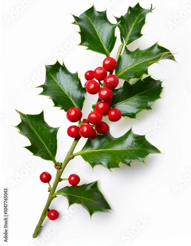 holly, sprig, berry, red berry, green leaf, christmas, holiday, winter, decoration, plant, nature, symbol, tradition, festive, seasonal, bright, vibrant, isolated, white background, macro, detail, foliage, botanical, flora, fresh